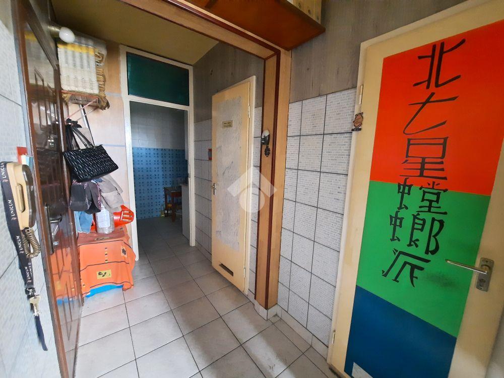 Közlekedő és a konyha járólappal és csempével burkolt, a konyhabútor átlagos állapotú, használható.