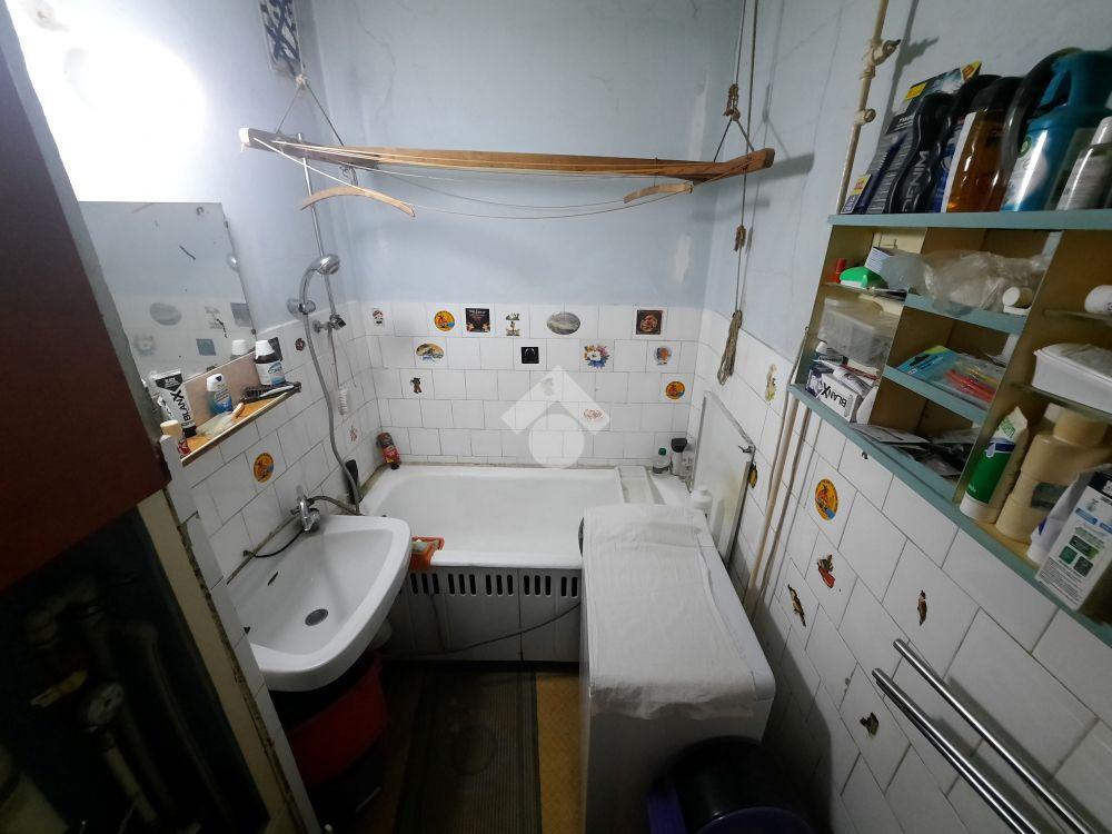 A fürdőszoba és a WC egy helyiségbe nyílik, kádas, felújítást igényel.