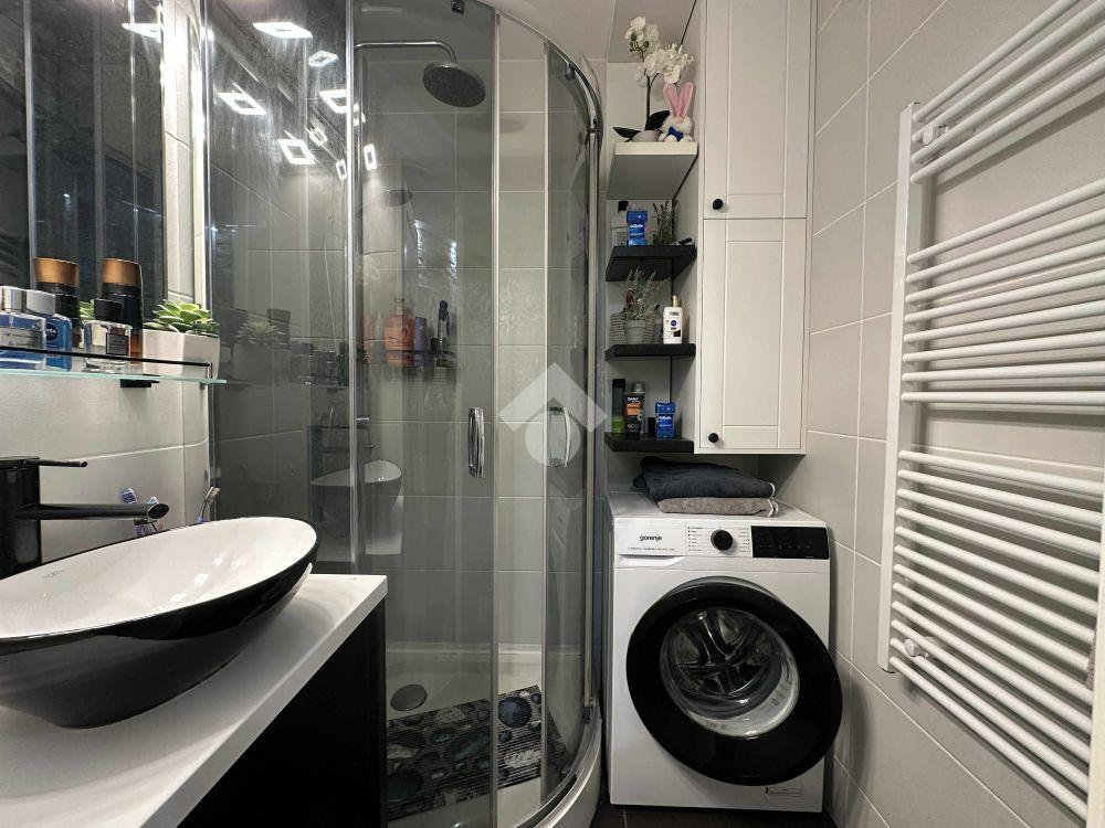 -A fürdőszoba burkolatai jó állapotúak, zuhanykabinnal felszerelt.